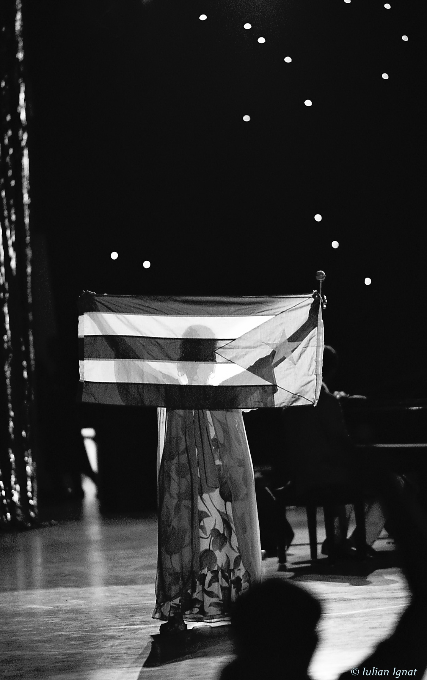 Înaintea primului său concert în România, cu vreo 10 ani în urmă, am stat împreună într-o săliță a hotelului Marriott pentru un interviu. O doamnă plăcută și sensibilă, naturală, veselă/melancolică, așa mi s-a părut. După vreo oră, ne-am întâlnit pe hol și am rugat-o să îmi semneze ceva. După asta, m-a pupat, am mai vorbit un pic dând din mâini ( interviul fusese tradus de Analia Selis, mulțumiri) și ne-am spus la revedere. S-a întors și m-a întrebat “Pot să te mai pup odată?”. Am asculta de curând două albume ale sale și nu le-am găsit deloc pe gustul meu, prea romanțioase. Însă în concert, am văzut-o de două ori și a fost grozavă. Fotografia-i făcută la Amfiteatru de vară din Herăstrău în vara lui 2011. Era un concert Buena Vista Social Club, ea a apărut vreo 20 de minute, a dansat într-o veselie și, la un moment dat, unul dintre cântăreți i-a pus în brațe steagul cubanez, cu care, la început, parcă n-a prea știut ce să facă. Omara Portuondo concertează în seara asta la Sala Palatului în cadrul turneului aniversar de 85 de ani.